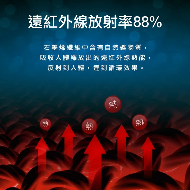 - 材質:表布材質 100%聚酯纖維(含石墨烯)、填充物材質 100%聚酯纖維、底布材質 100%聚酯纖維